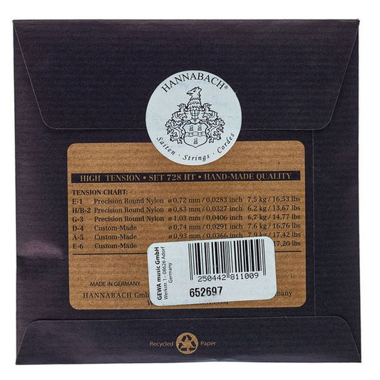 Set Cuerdas Guitarra Clásica Hannabach 728HT, High Tension