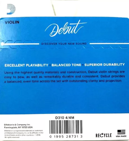 Set Cuerdas Violín D'Addario Debut D310 4/4M