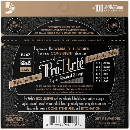 Set Cuerdas Guitarra Clásica Daddario EJ47, Medium Tension