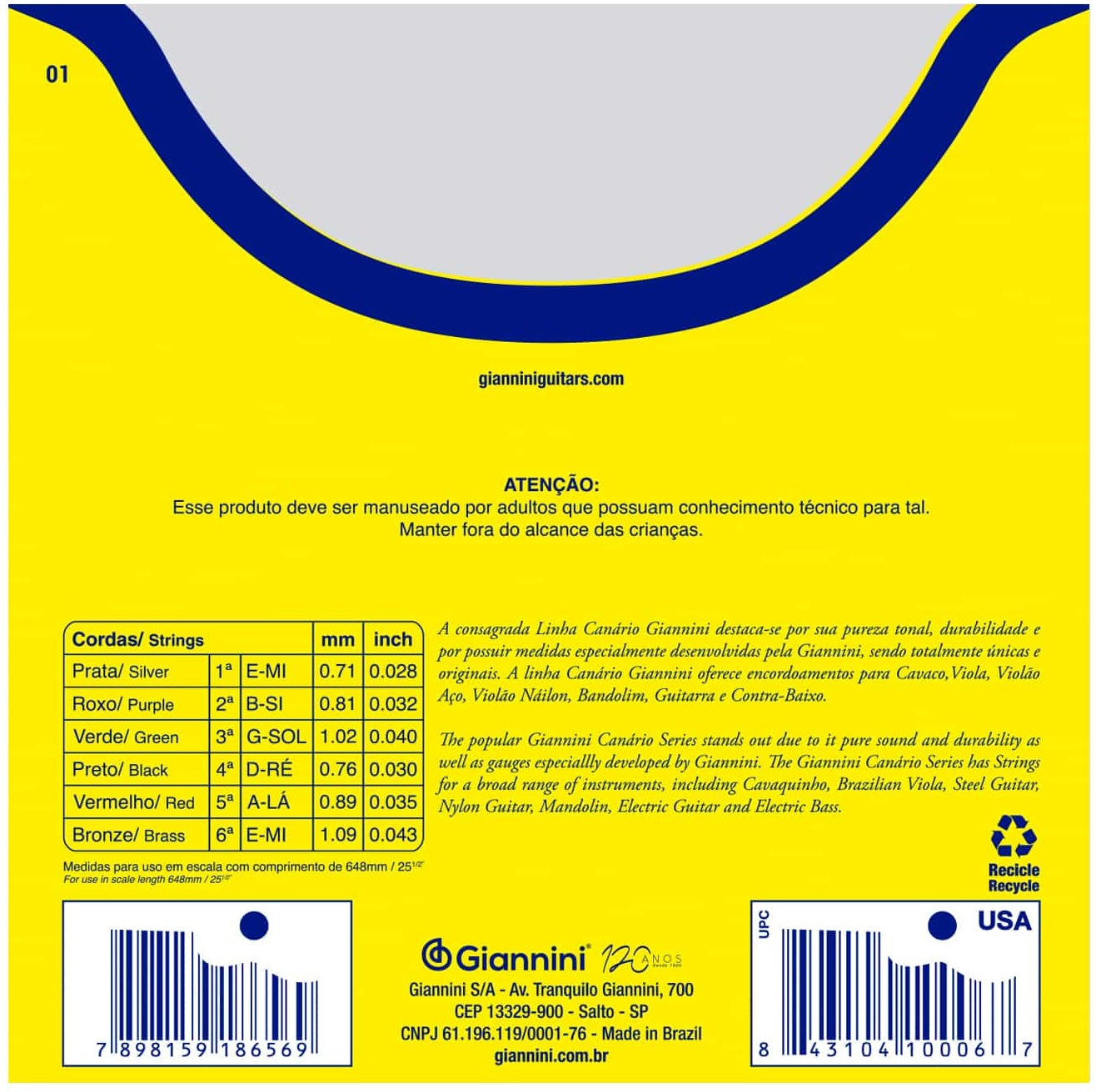 La serie Canário es una de las más tradicionales de Giannini, además de una de las más vendidas. La cuerda de guitarra de nailon de 6 cuerdas Giannini Canário GENW tiene un núcleo de nylon recubierto de cobre plateado, y es la mejor relación calidad-precio que encontrarás en una cuerda, sin perder la calidad ni el timbre de tu sonido. Todas las cuerdas Giannini se producen en Brasil, en nuestra fábrica de Salto, en el interior de São Paulo.